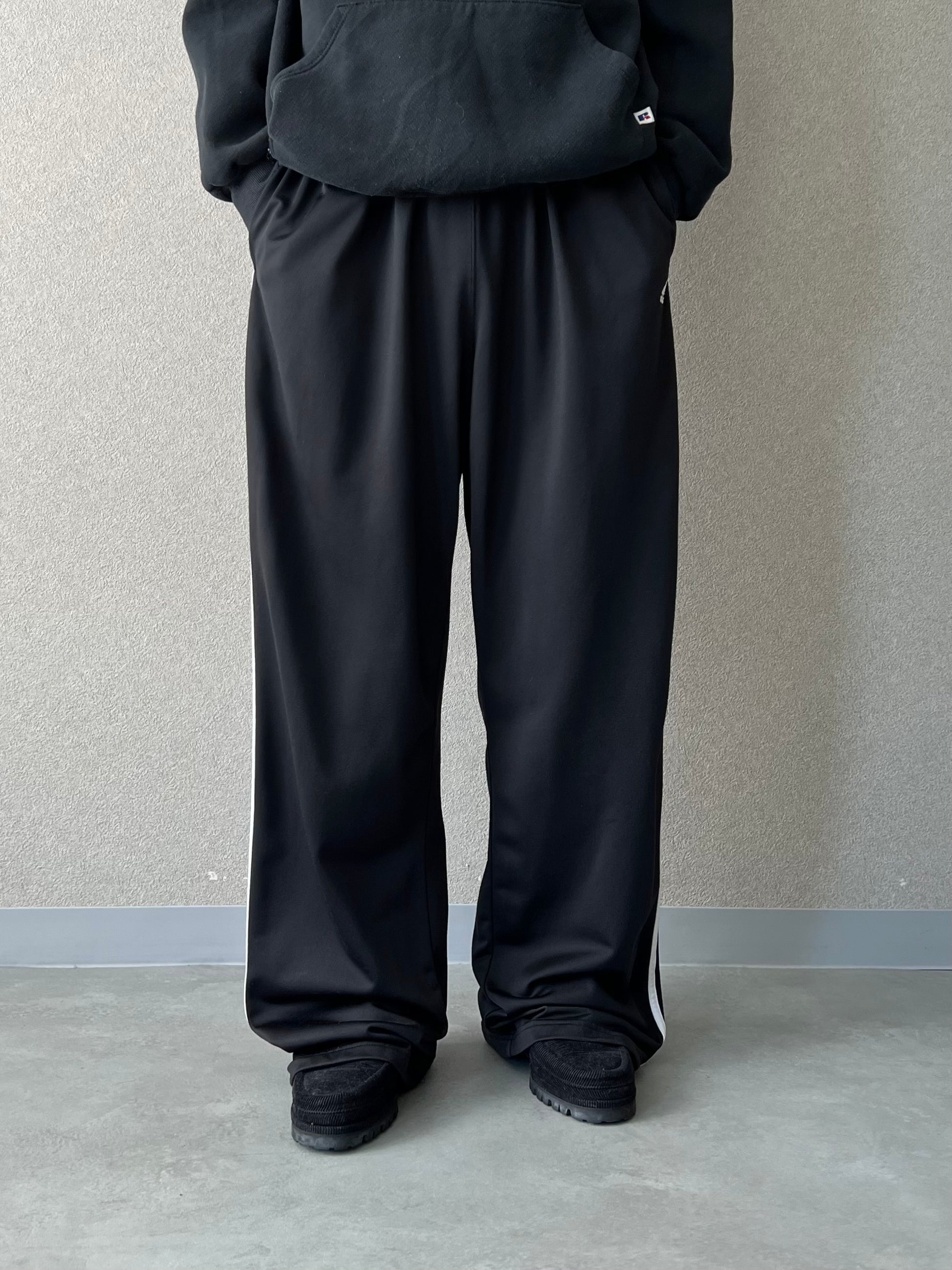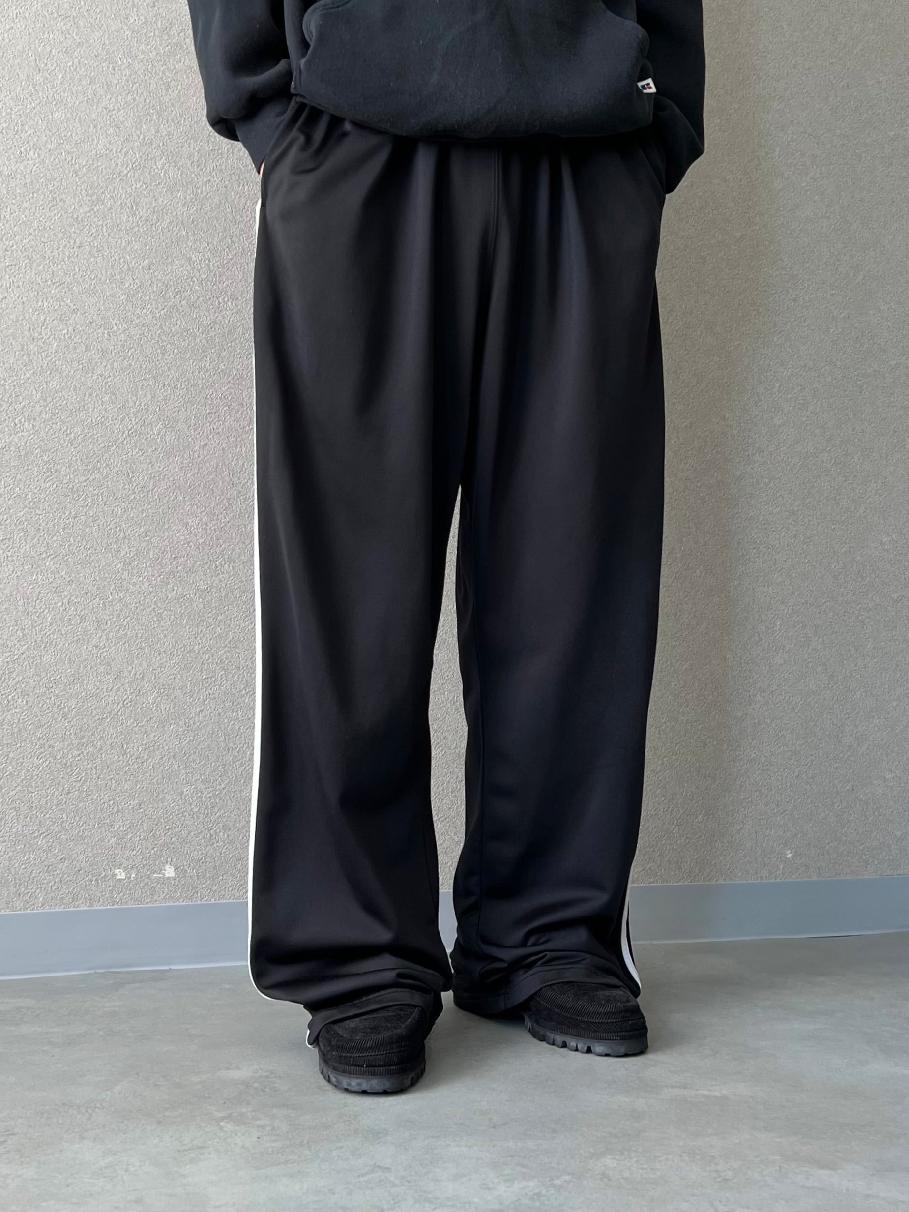 テロっとしたジャージ素材で落ち感がありワイドストレートのシルエット。