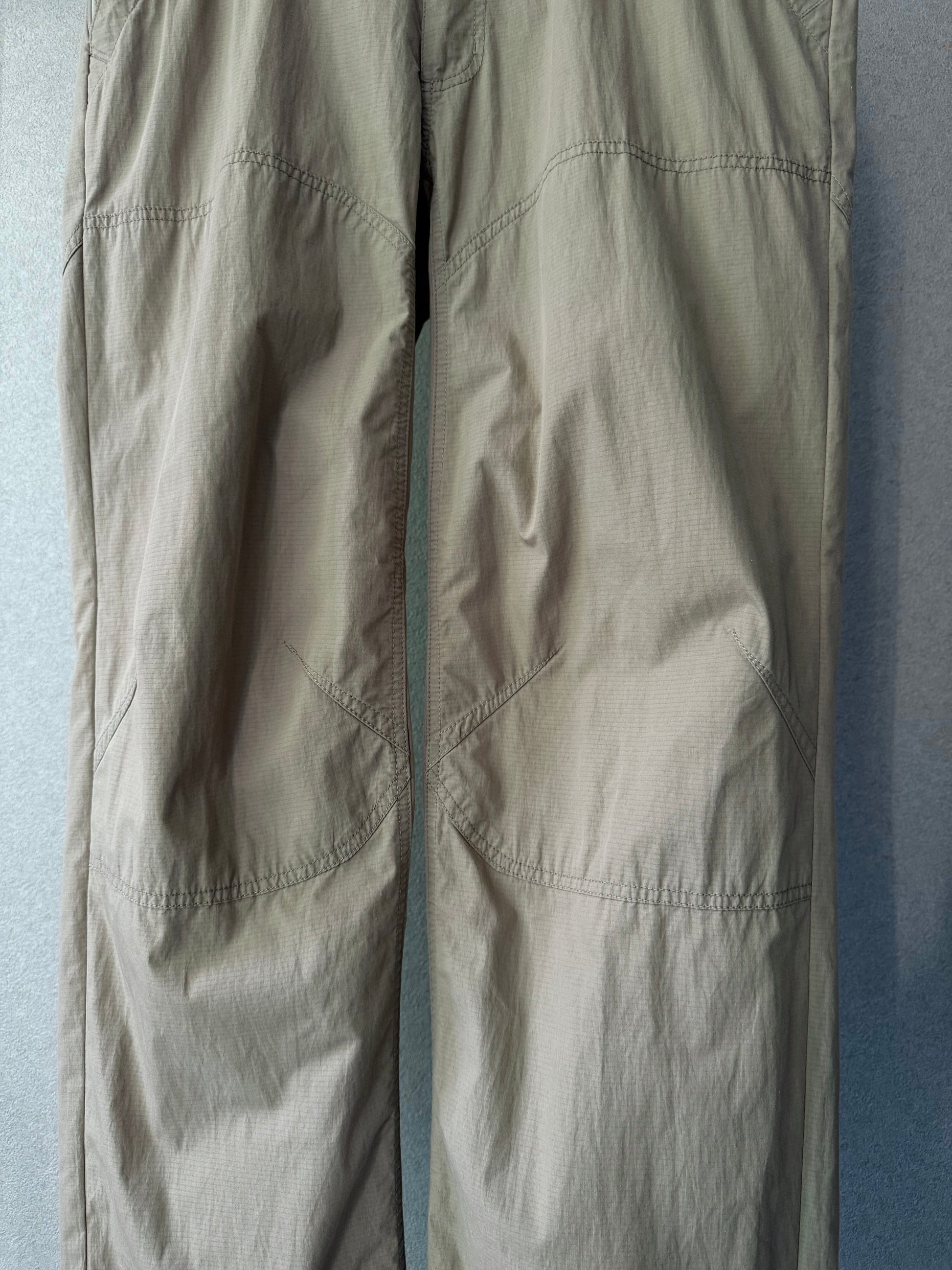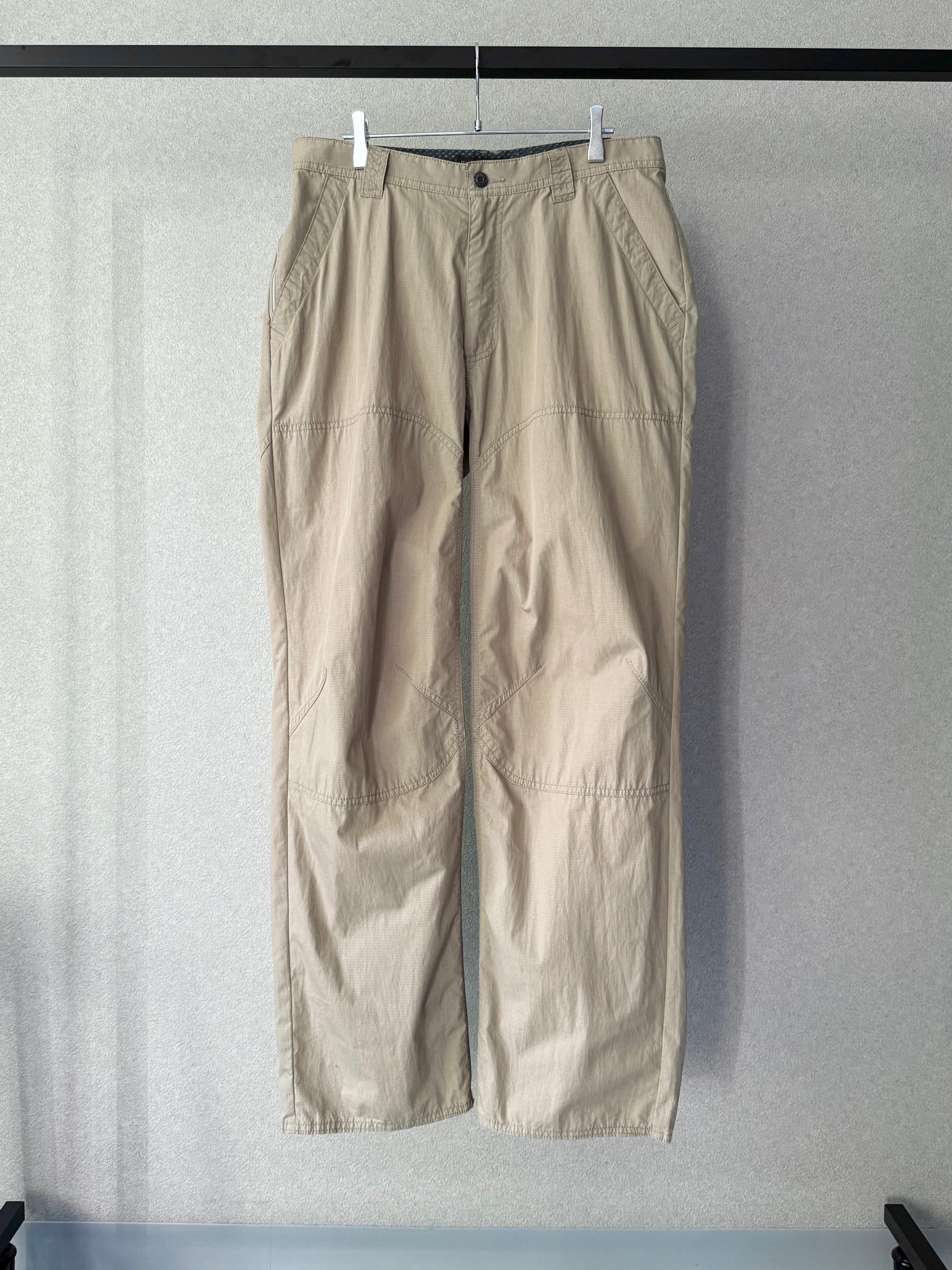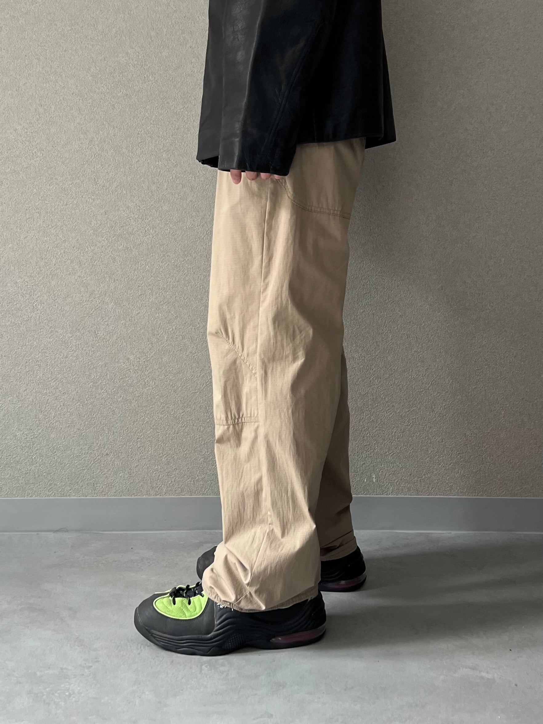 クライミングを感じさせる膝に施されたダーツにより、着用時の立体感とこの手のパンツにしては太いストレートシルエットが◎