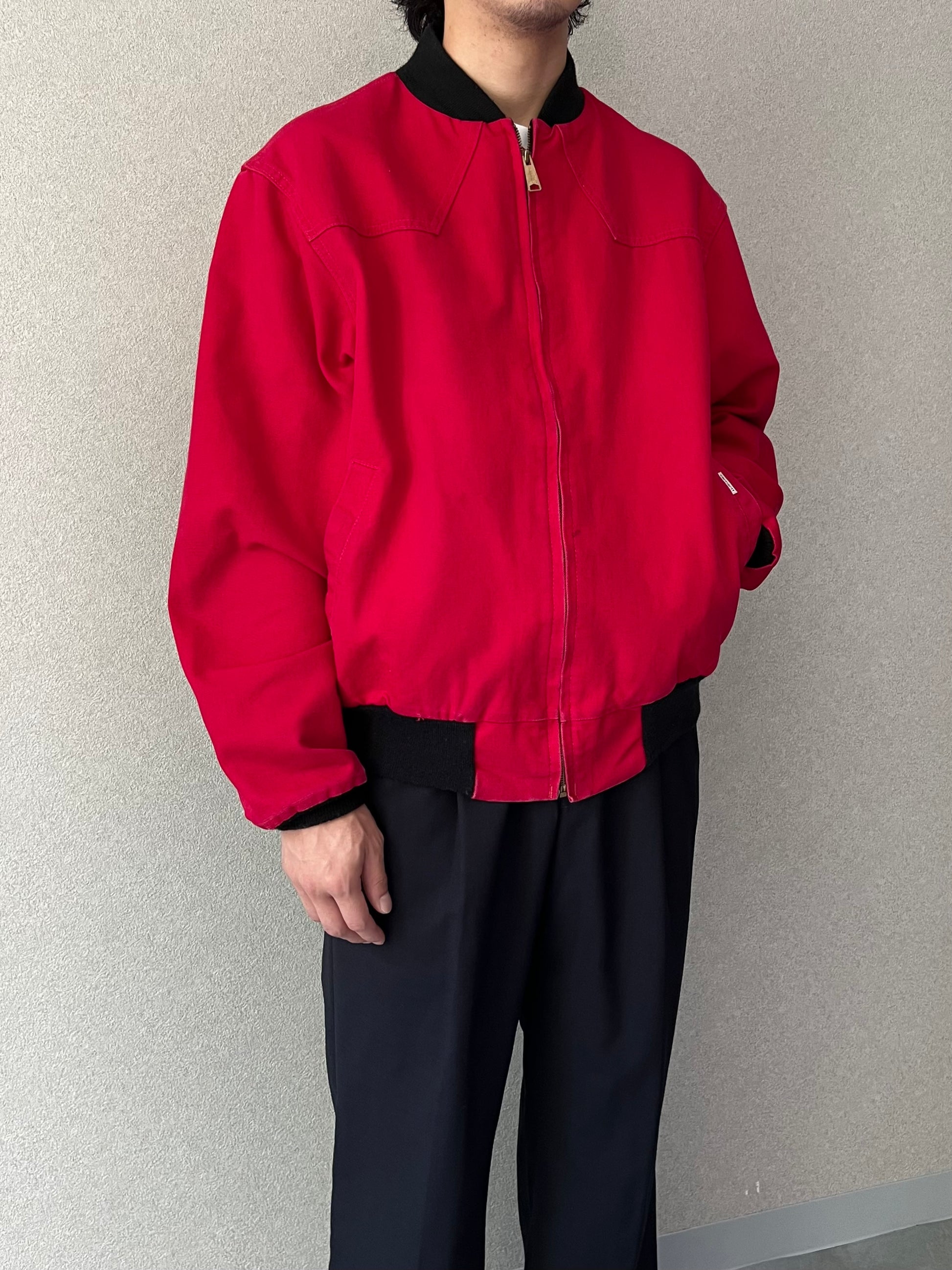 おまけに赤というカラーリングも稀有で、古着的にもファッション的にもオススメできる一着。